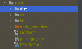 首先我们看看antd的包都包含些什么内容。从下图可以看出antd中主要包含了lib / es / dist三个文件夹,分别是通过三个不同的模块系统打包生成的。